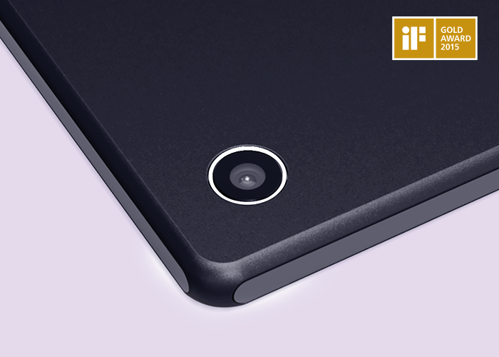 The backside of the device is made of a very thin sheet of high-grade fiberglass and by moulding that straight into the frame of the tablet we created a seamless frame structure without any split between the side and rear panel. This solution not only made the device more rigid, it also added a more premium look to the design.